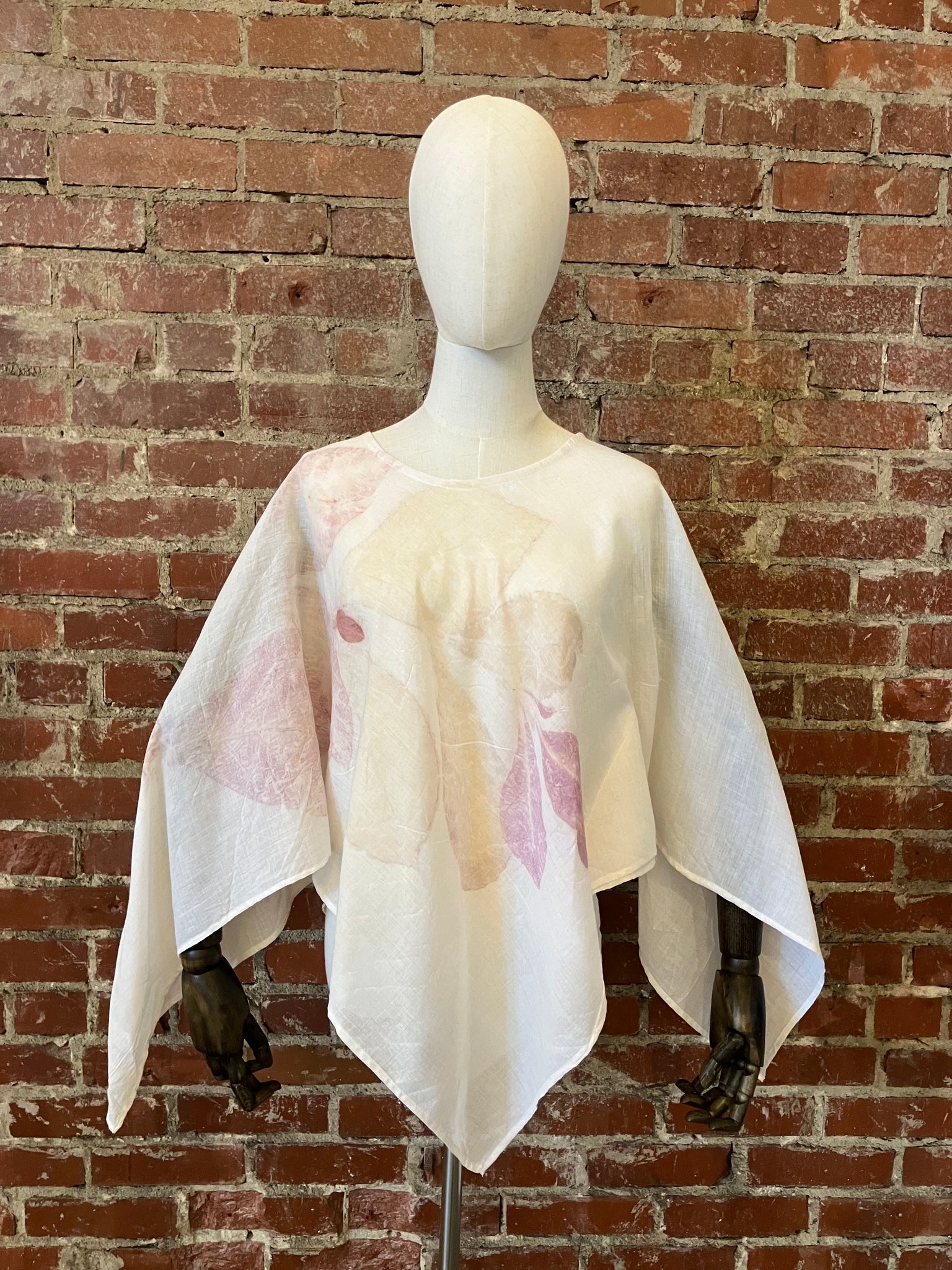 A Natural Print Top is a garment made from fabric that has been hand-dyed using real leaves, flowers, and herbs. Each top is dyed individually, resulting in unique designs and themes—some feature teak leaf prints, others are dyed with turmeric, blue butterfly pea flowers, or a combination of natural elements. One-Size only.